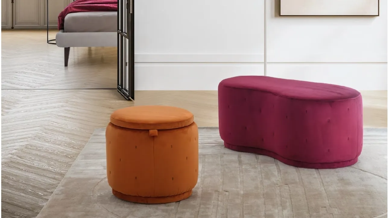 Le composizioni di charme del brand Le Comfort valorizzano l'habitat con i loro colori e stile, ricreando particolari atmosfere arredative. Altamente versatili e multifunzionali, i Complementi moderni in tessuto assolvono a funzioni differenti: ultimano le doti di praticità e l'estetica dell'ambiente. In negozio potrai toccare con mano la qualità dei modelli di pouf moderni in tessuto del marchio, proprio come questa soluzione in foto. Complementi e pouf completano l'arredo di casa, occupando lo spazio in modo utile e rendendolo accogliente e bello da vedere. Pouf Dunk e Pinto di Le Comfort in tessuto: conferirà carattere e charme a un locale arredato con mobili ed elementi accessori dai richiami moderni.