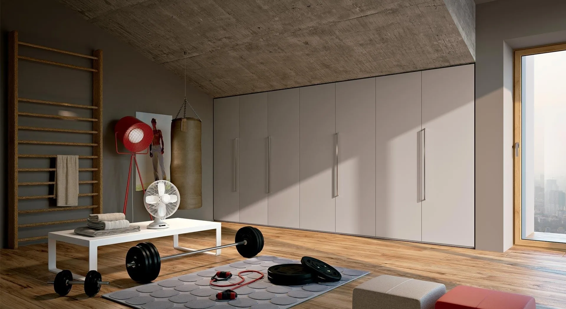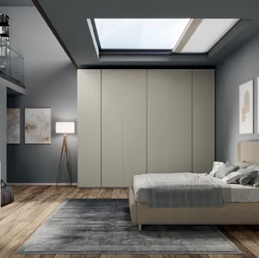 Eccoti l'armadio Composizione 32 in laccato opaco di Ferrimobili! Un ricco catalogo di armadi per mansarde con ante battenti.