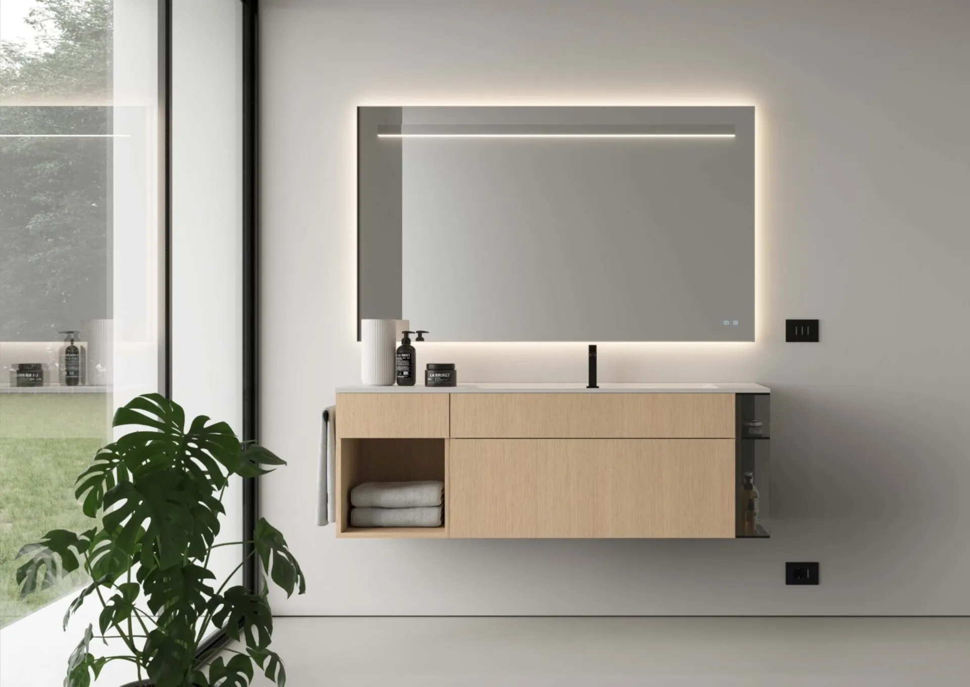I programmi di Arredo Bagno della firma Ideagroup garantiscono buone occasioni di personalizzazione, un design ricercato, tanta funzionalità ed ergonomia. Il modello in legno che presentiamo è sviluppato per decorare la stanza da bagno unendo ottimamente grandi doti di funzionalità e stile. Ogni componente di Arredo Bagno design con mobili bagno sospesi della firma serve a far diventare il locale di destinazione un interno gradevole. Una scelta praticamente infinita di finiture disponibili e colori di design connotano glimobili del rinomato marchio, sinonimo di eccellenza nel settore. Una notevole cura dei particolari garantisce la qualità che connota ciascuna linea di mobili bagno sospesi di Ideagroup a disposizione in showroom.