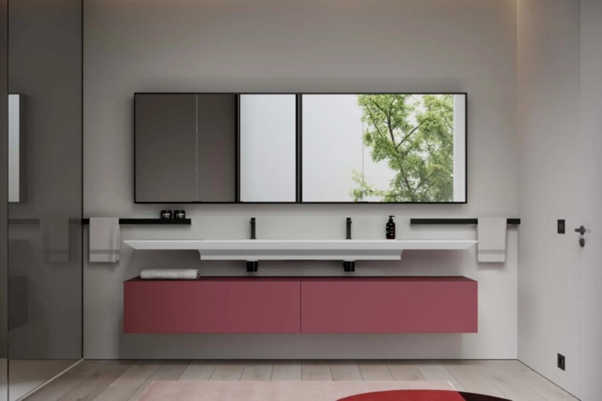 mobili bagno sospesi in laccato opaco della firma Ideagroup: clicca e scopri l'arredo bagno design Dogma 17 per il tuo bagno.