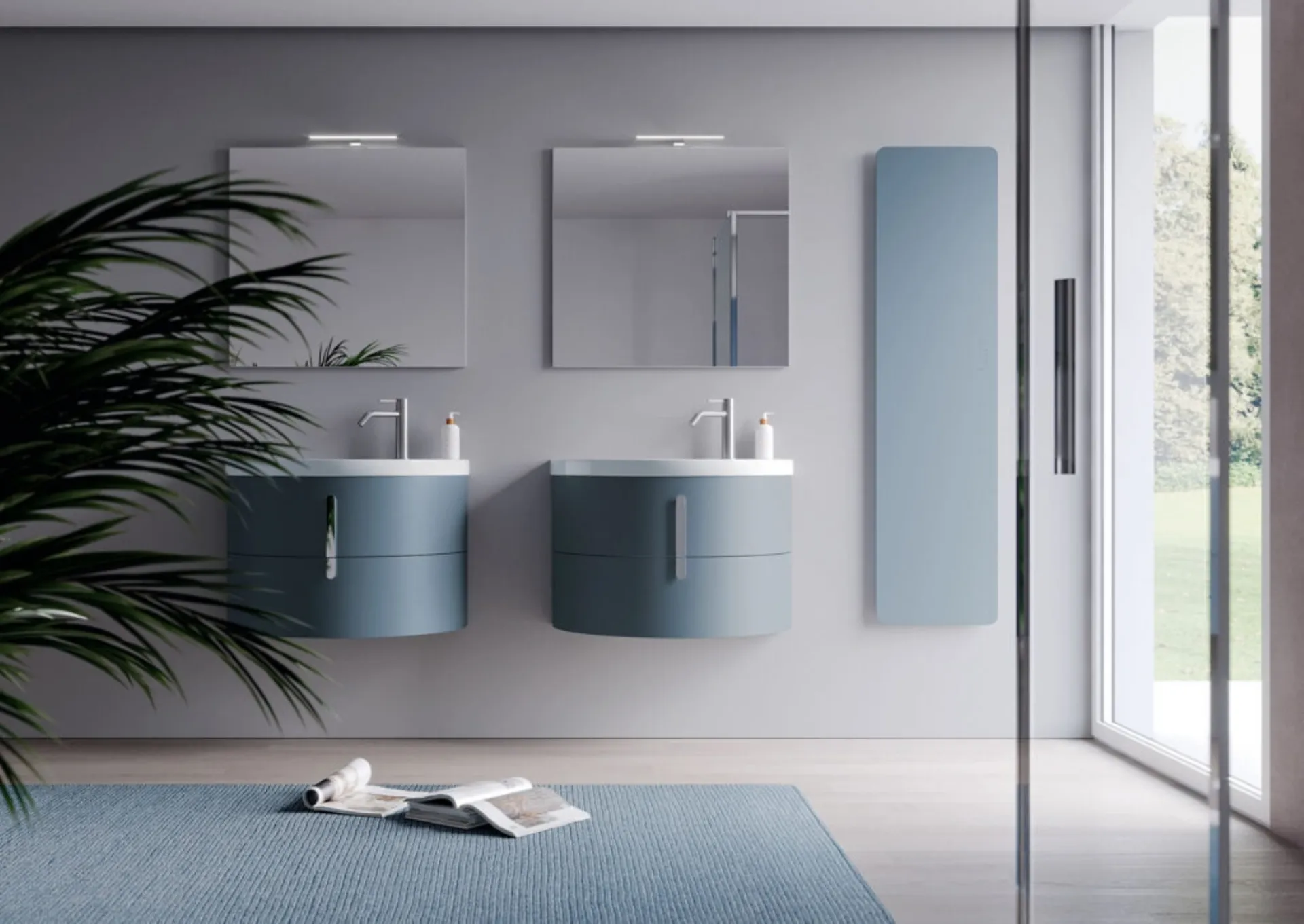 mobili bagno sospesi in laccato opaco della firma Ideagroup: clicca e scopri l'arredo bagno moderno Moon 07 per il bagno di casa.