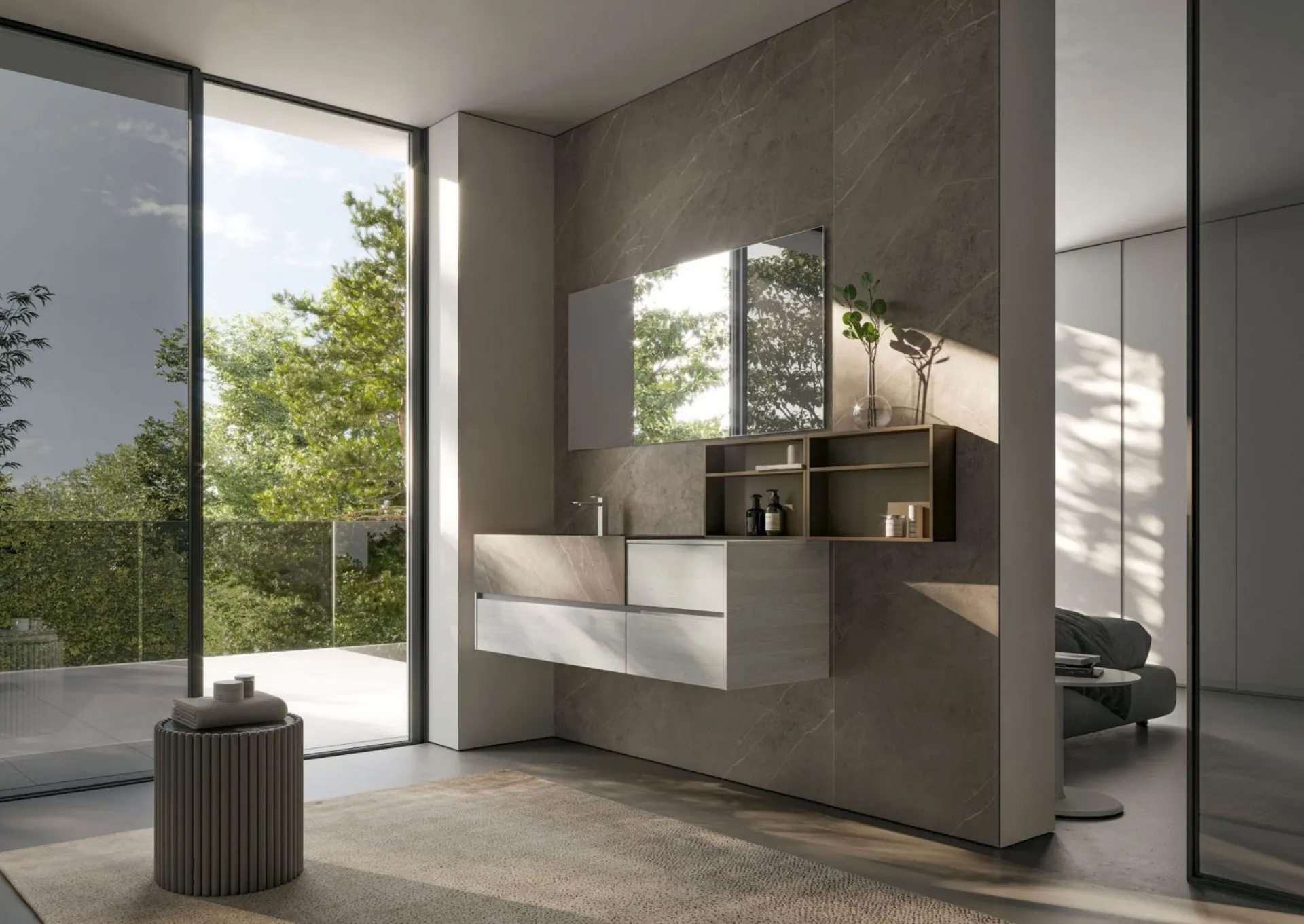 mobili bagno sospesi Nyù 16 di Ideagroup: scopri l'Arredo Bagno in HPL design e arreda il bagno di casa.