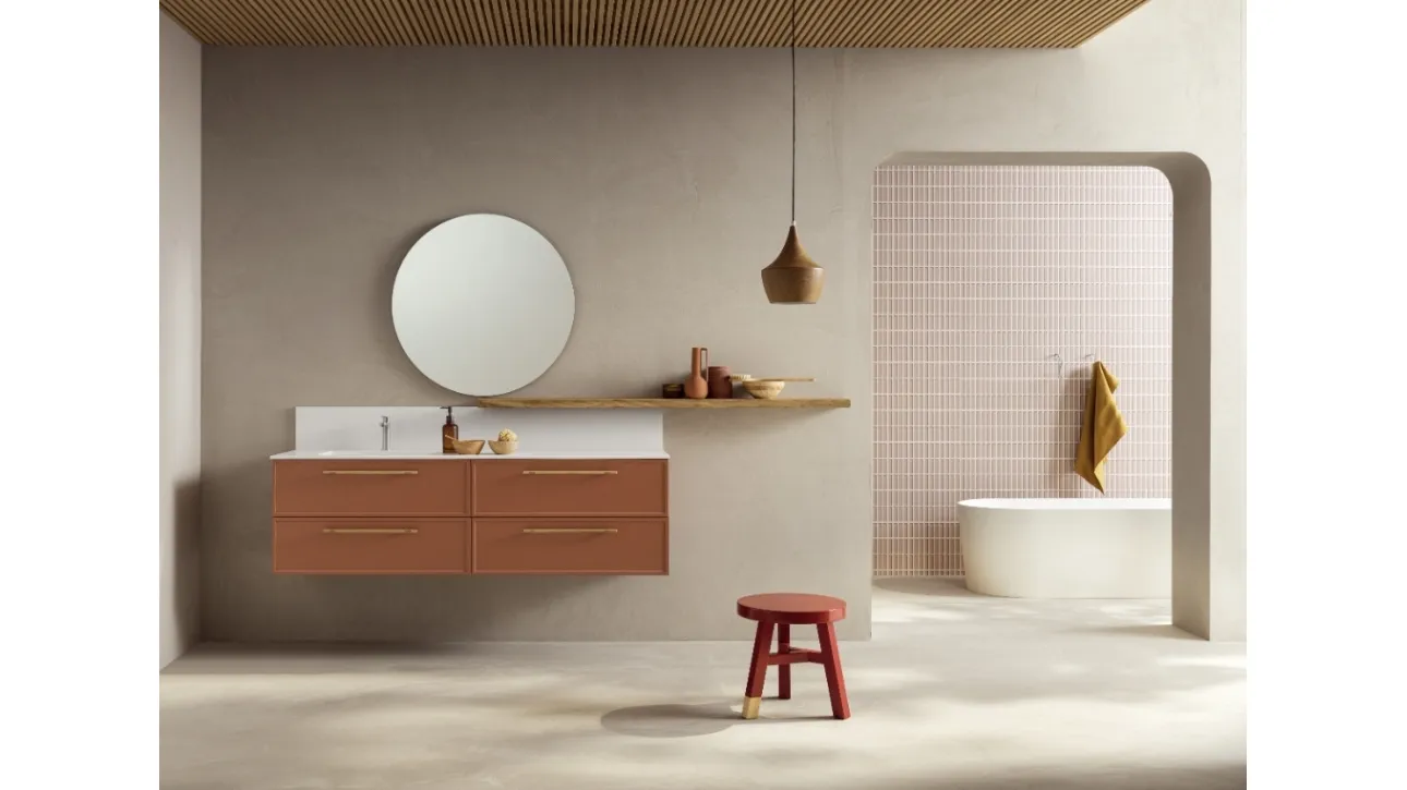Mobili bagno sospesi in laccato opaco del marchio Compab: clicca e scopri l'arredo bagno moderno PICTA PC07 per il bagno di casa.