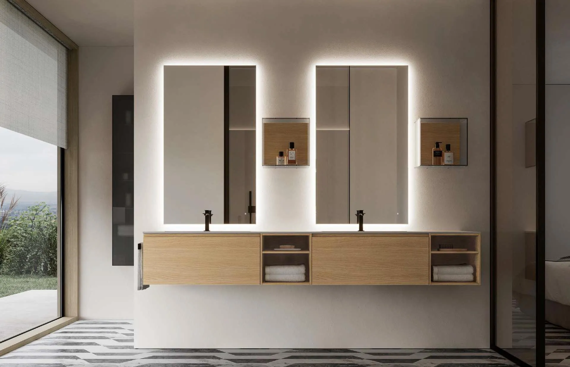 mobili bagno sospesi Seventy|Form 17 di Ideagroup: scopri l'Arredo Bagno in legno moderno e arreda la stanza del benessere.