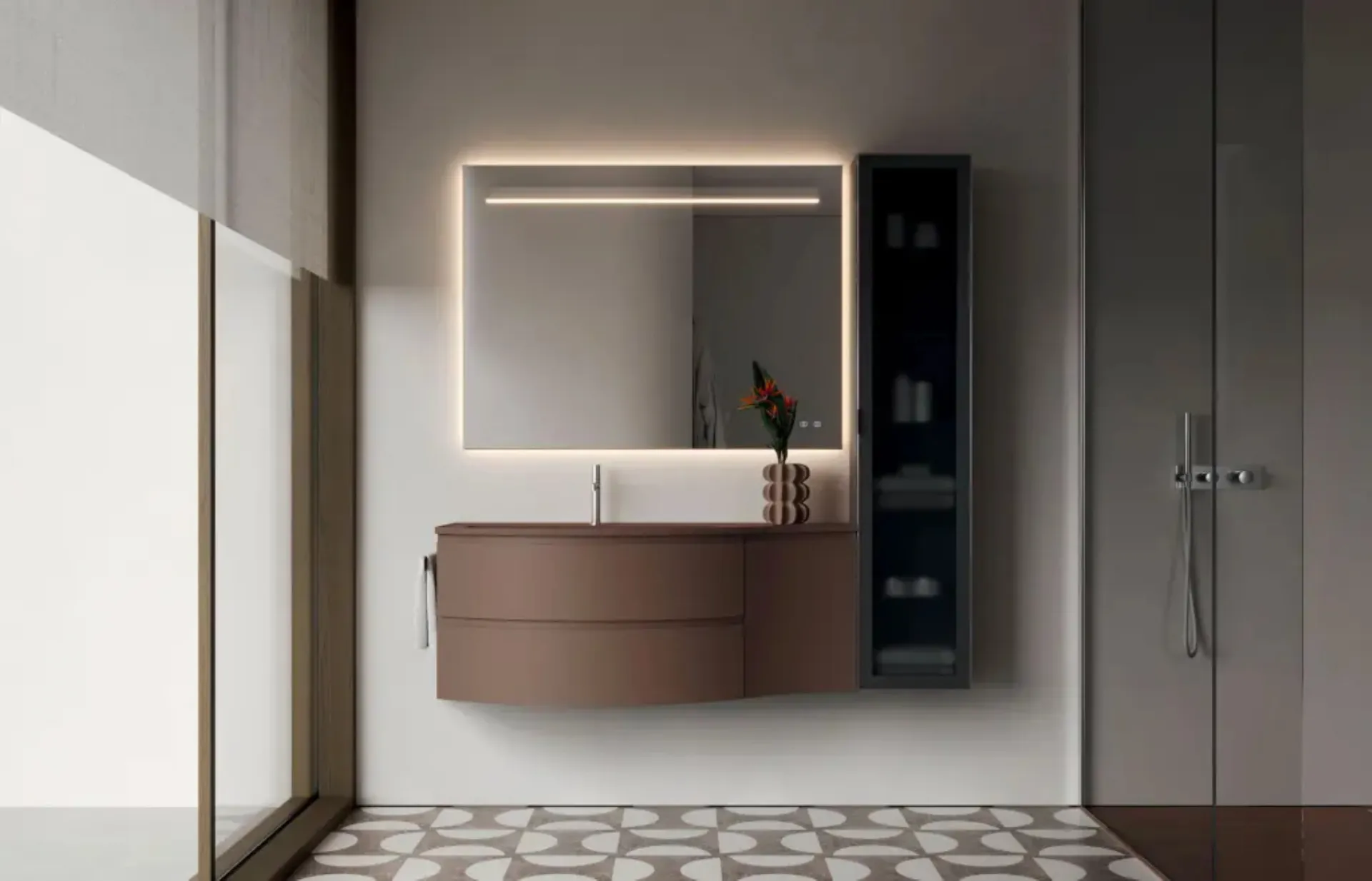Scopri di più sull'arredo bagno moderno: mobili bagno sospesi in laccato opaco come il modello Seventy|Form 24 di Ideagroup ti aspettano.