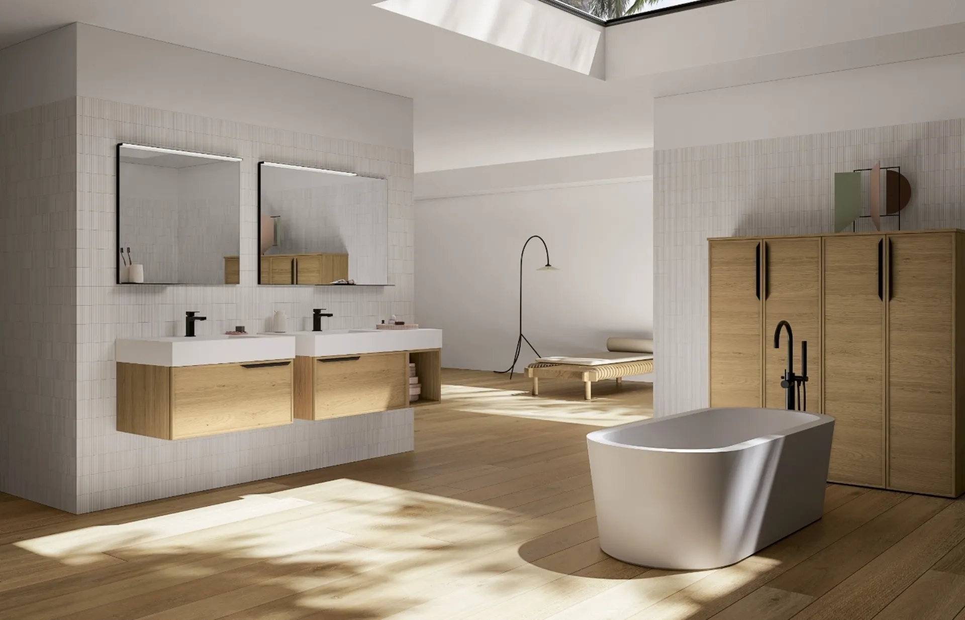 Mobili bagno sospesi in legno dell'azienda Compab: clicca e scopri l'arredo bagno moderno TABULA TB11 per la stanza del benessere.