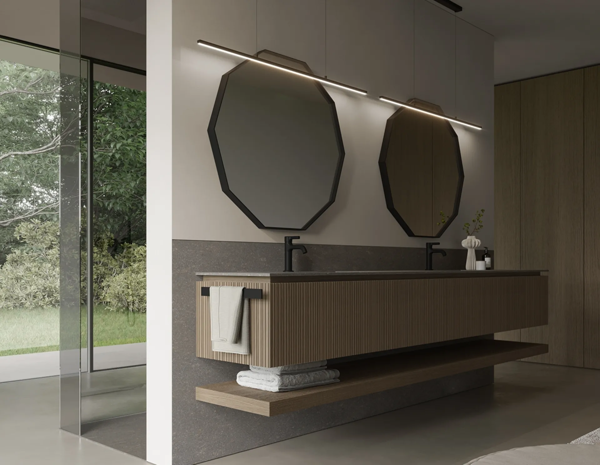 mobili bagno sospesi in legno della firma Ideagroup: clicca e scopri l'arredo bagno design ViaCondotti 01 per il bagno di casa.