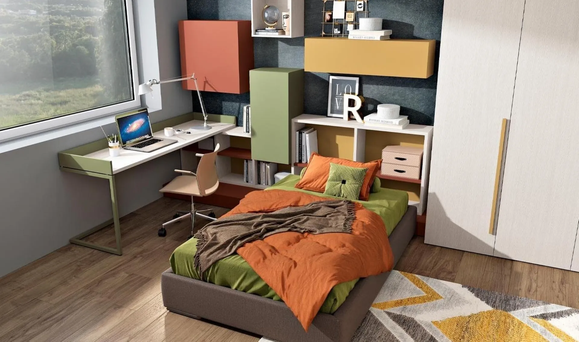 Con questa cameretta Cameretta moodbook 201 Ferrimobili, tra le soluzioni componibili, potrai arredare stanze moderne per ragazzi.