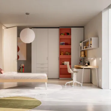 Nell'arredo della stanza dei bambini affidati a noi: nel nostro punto vendita proponiamo tutte le più esclusive composizioni arredative moderne per la loro camera. Se cerchi spunti creativi per decorare ottimamente la stanza dei tuoi figli, ti proponiamo la Cameretta Ponte 43 di Mistral con finitura in melaminico. Porta estetica e tonalità vivaci nella stanza dedicata ai più giovani con questa proposta, una tra le Camerette a ponte per bambini di Mistral. Questa proposta in melaminico ultima ottimamente le doti di funzionalità e l'estetica della camaretta, in quanto è capace di congiungere funzionalità ed ergonomia. Mistral propone un ricco catalogo di elementi accessori da comporre su misura: troverai letto, armadio o cabina armadio, scrivania, sedie e librerie.
