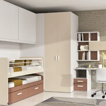 Arreda stanzette moderne con le Camerette con letti a castello Siloma! Il modello SET K29 in melaminico è per bambine.