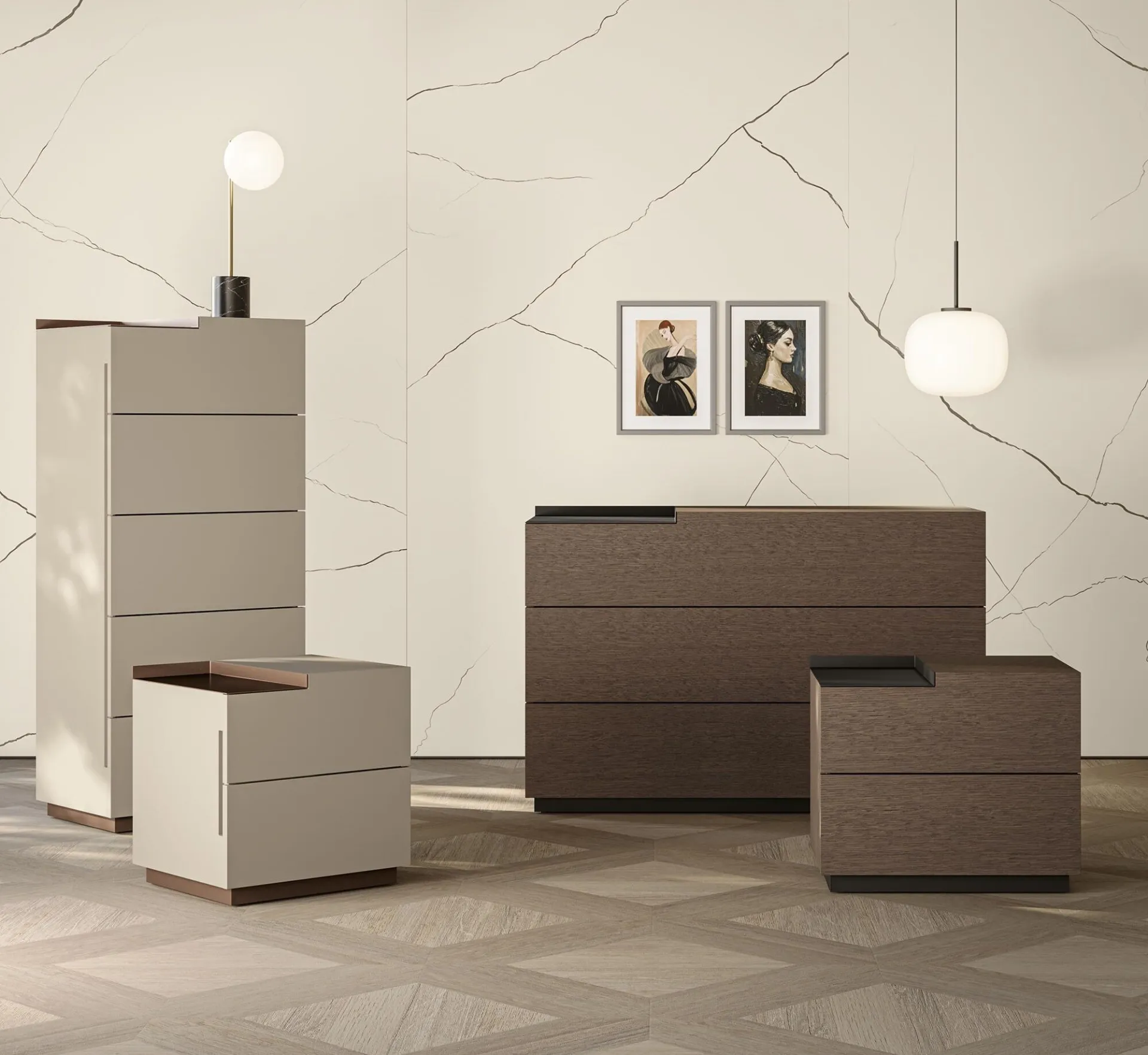 Una ricca gamma di mobili con cassetti Morassutti: i comodini design in legno, come City Gruppo Notte, sono tra le proposte più belle.