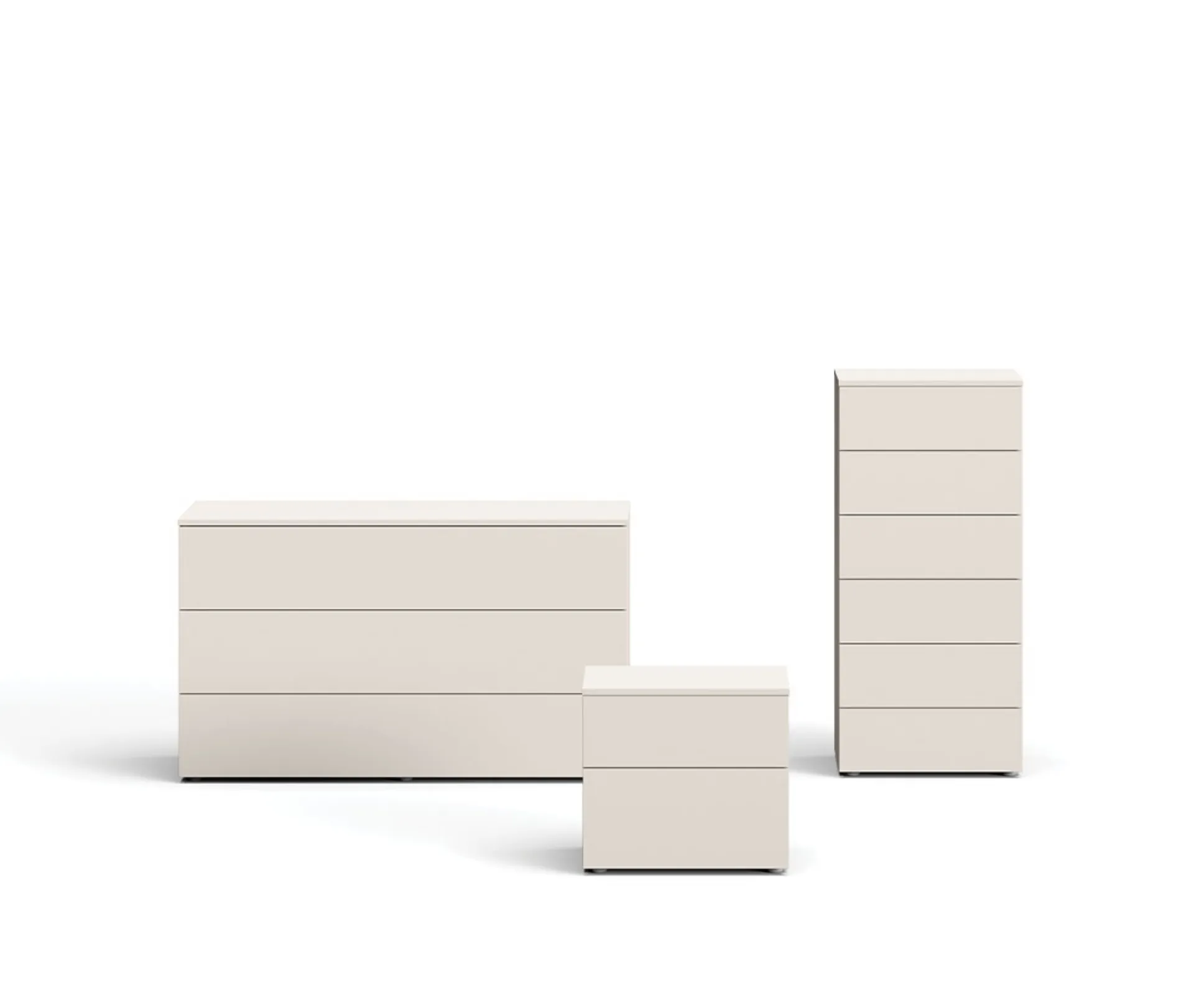 Vuoi ammobiliare la zona notte con Comodini e cassettiere di Orme? Eccoti il modello Gruppo Notte Flow in melaminico per spazi moderni.