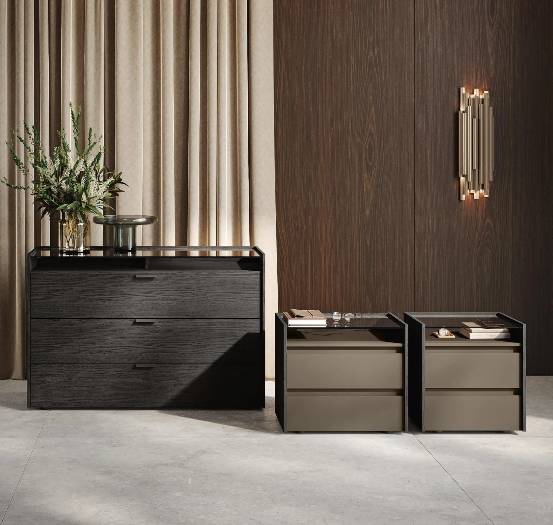Scopri Comodini moderni e mobili con cassetti Morassutti! Il modello Kristal Gruppo Notte costruito in legno è l'acquisto perfetto.