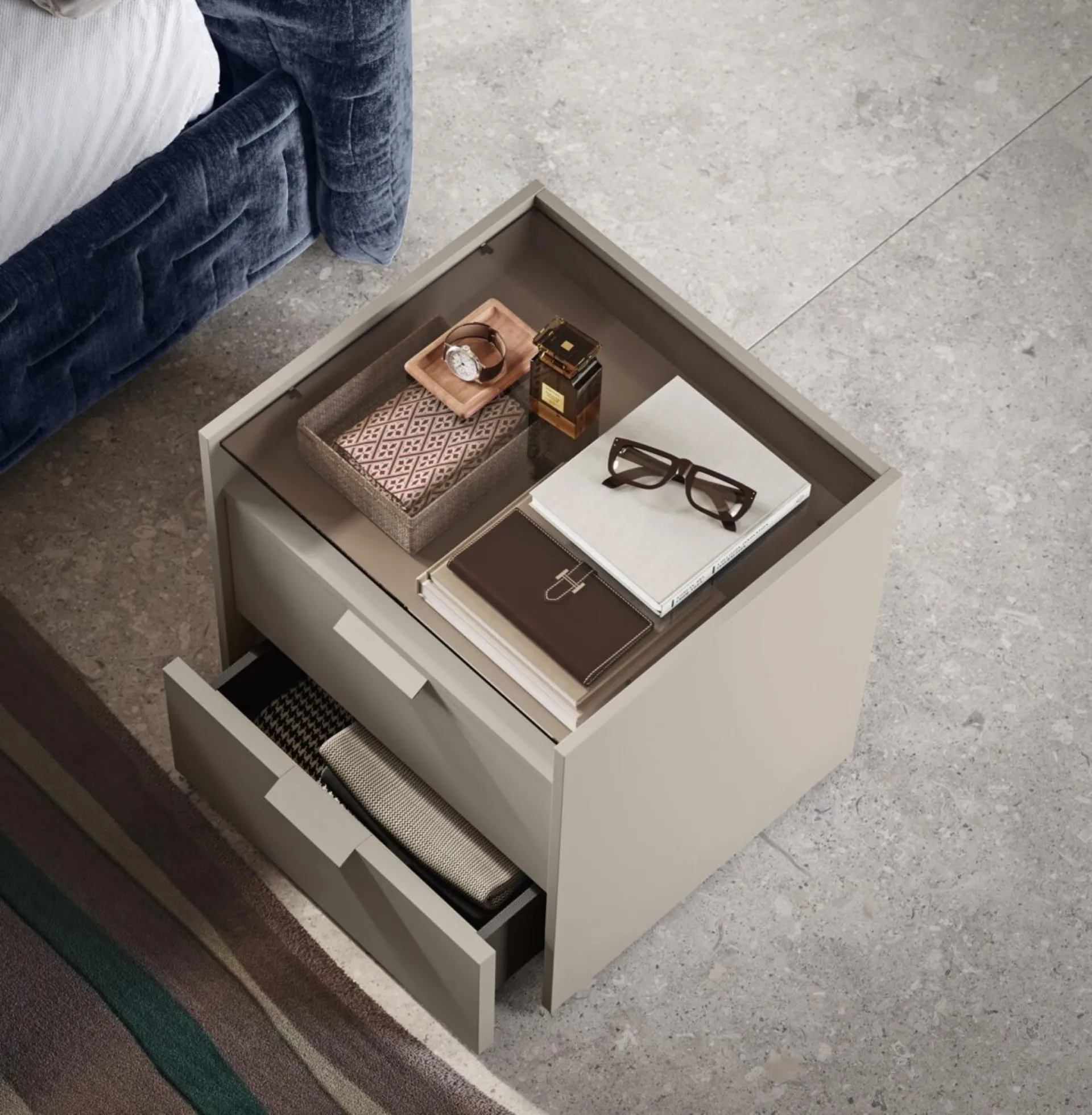 Un ricco catalogo di cassettiere Morassutti: i comodini moderni in laccato opaco, come Kristal, sono tra le soluzioni più originali.