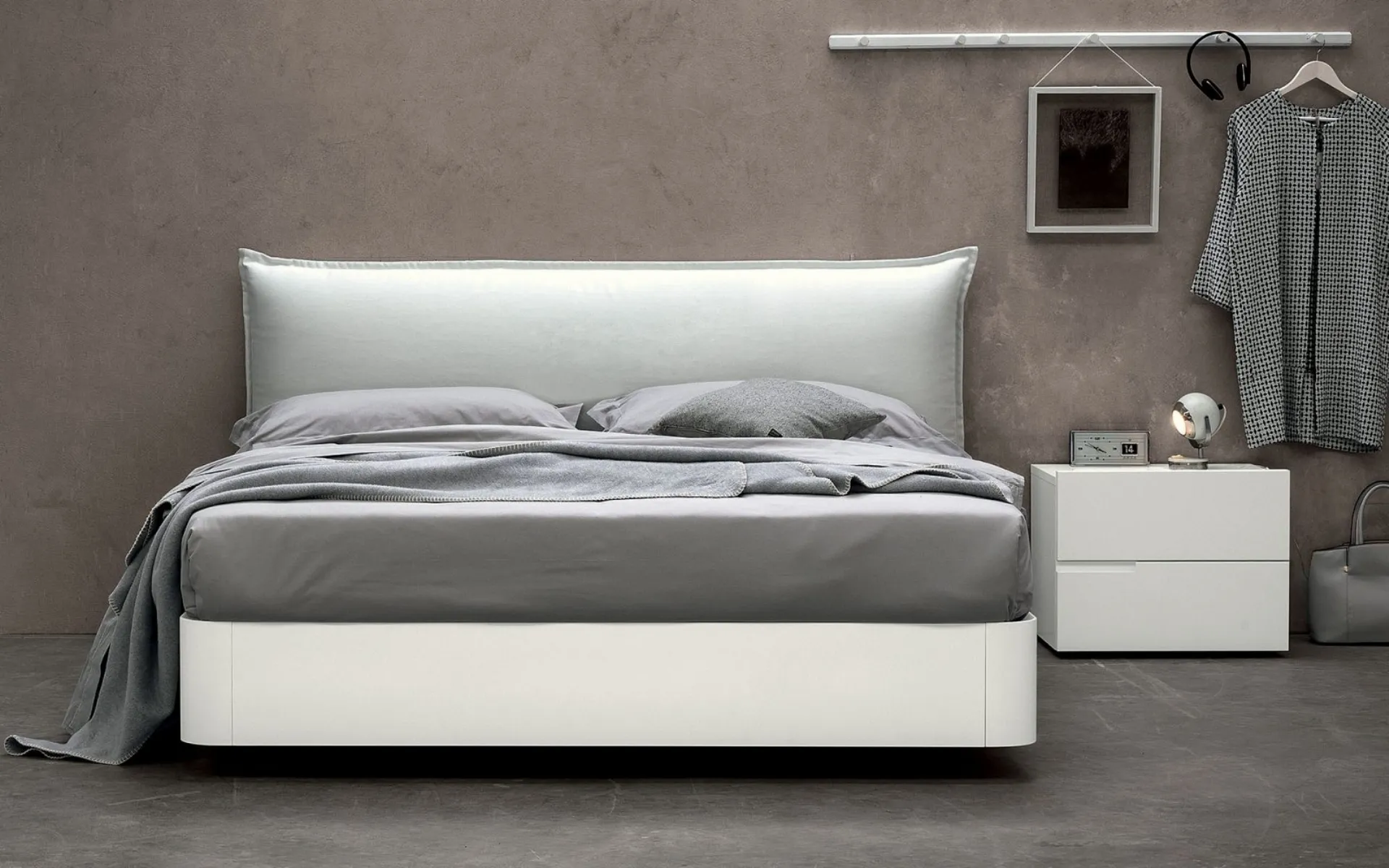Vuoi progettare la zona notte? Ecco qui il letto in tessuto Tender di Morassutti per spazi moderni.