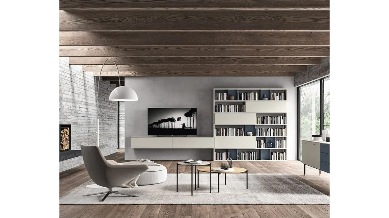 Clicca e scopri le Librerie a muro moderne! Il modello BK07 1 Cinquepuntozero saprà ultimare un soggiorno pratico e operativo.