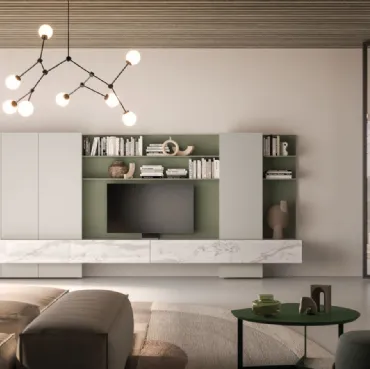 Vuoi arredare un living dinamico e operativo? Ti offriamo la parete attrezzata Modulo Day 12 Orme dalle forme decise moderne.