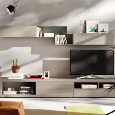 Se desideri ultimare un living operativo e pratico dalle linee moderne, ecco a te la parete attrezzata Day 25 Orme.