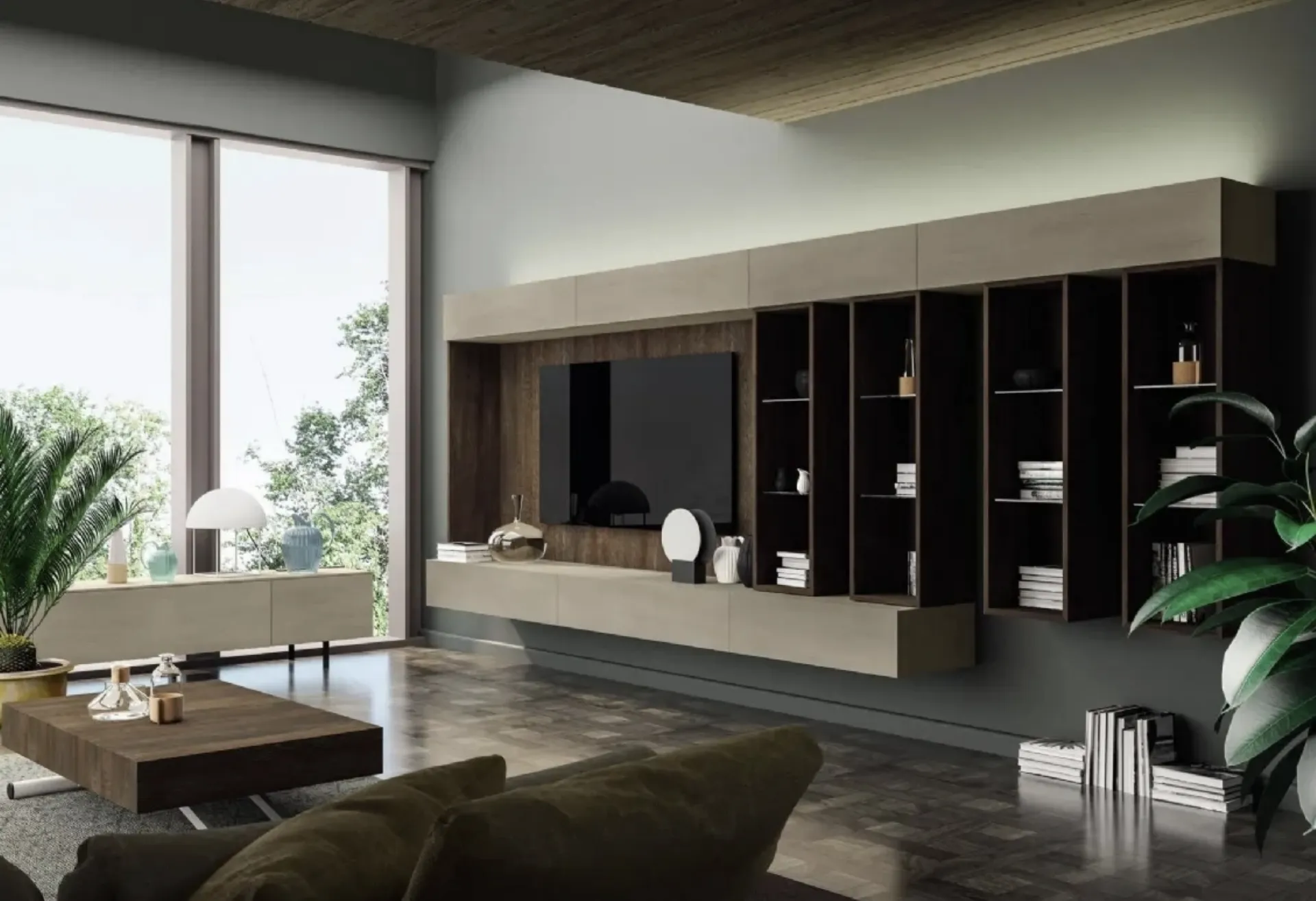 Vuoi progettare un soggiorno pratico e operativo? Ecco a te la parete attrezzata Cheba 05 Fratelli Mirandola dalle linee decise moderne.