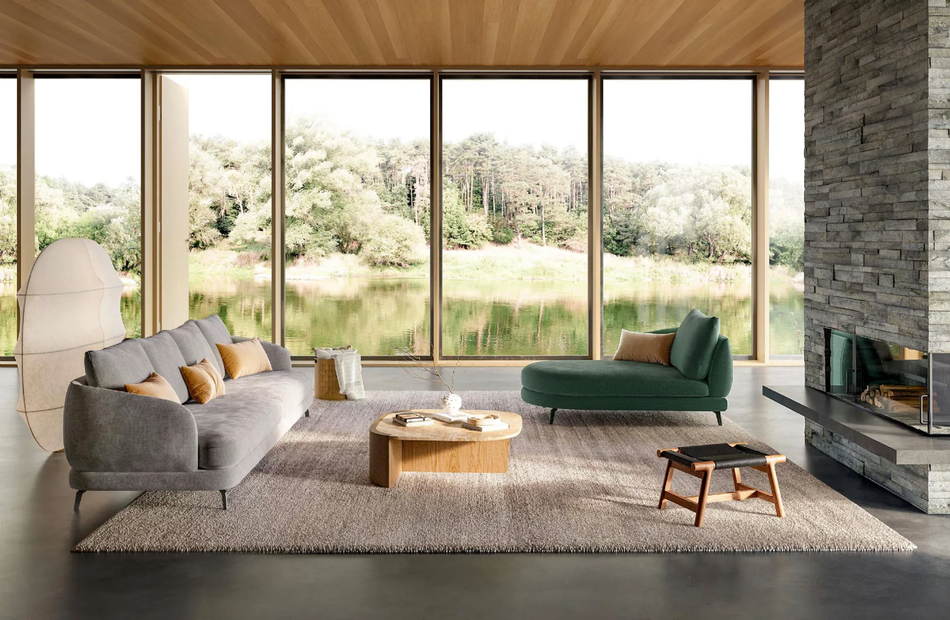Se vuoi divani per salotti moderni, clicca e leggi di più sul modello Jand in tessuto del marchio Le Comfort.