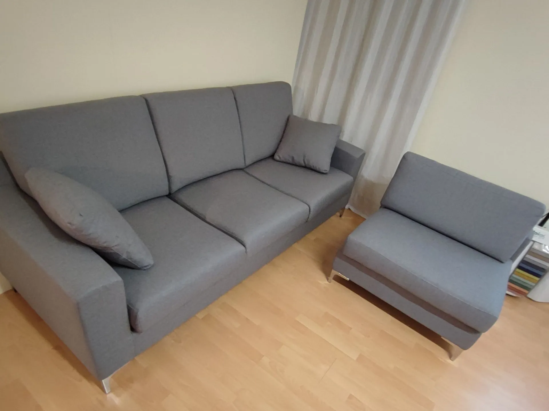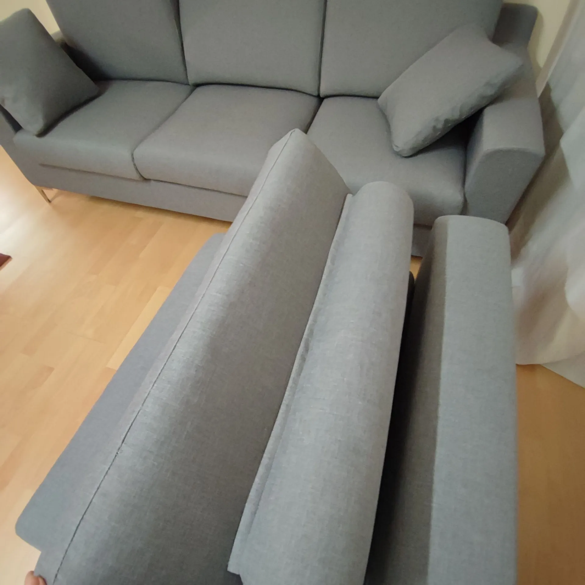 Rivestimento in tessuto colore grigio, completamente sfoderabile e lavabile in lavatrice.
