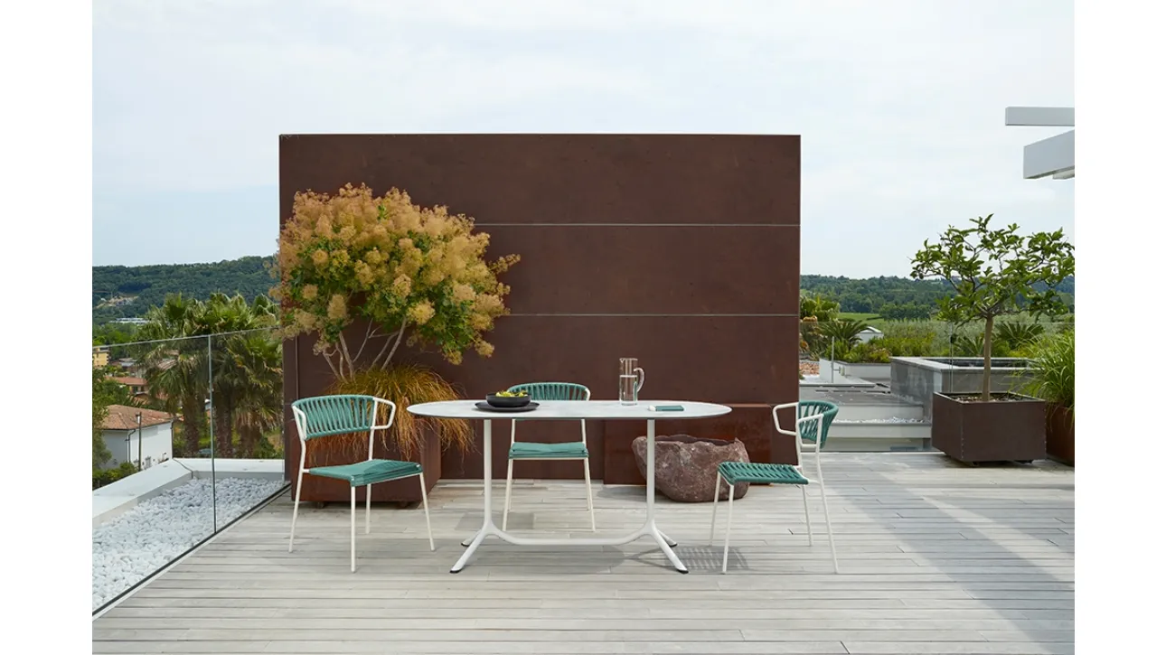 Un ricco catalogo di tavoli da giardino in HPL ti sta aspettando nel nostro punto vendita: clicca e scopri il modello Tripé Doppio Tavolo di Scab Design.